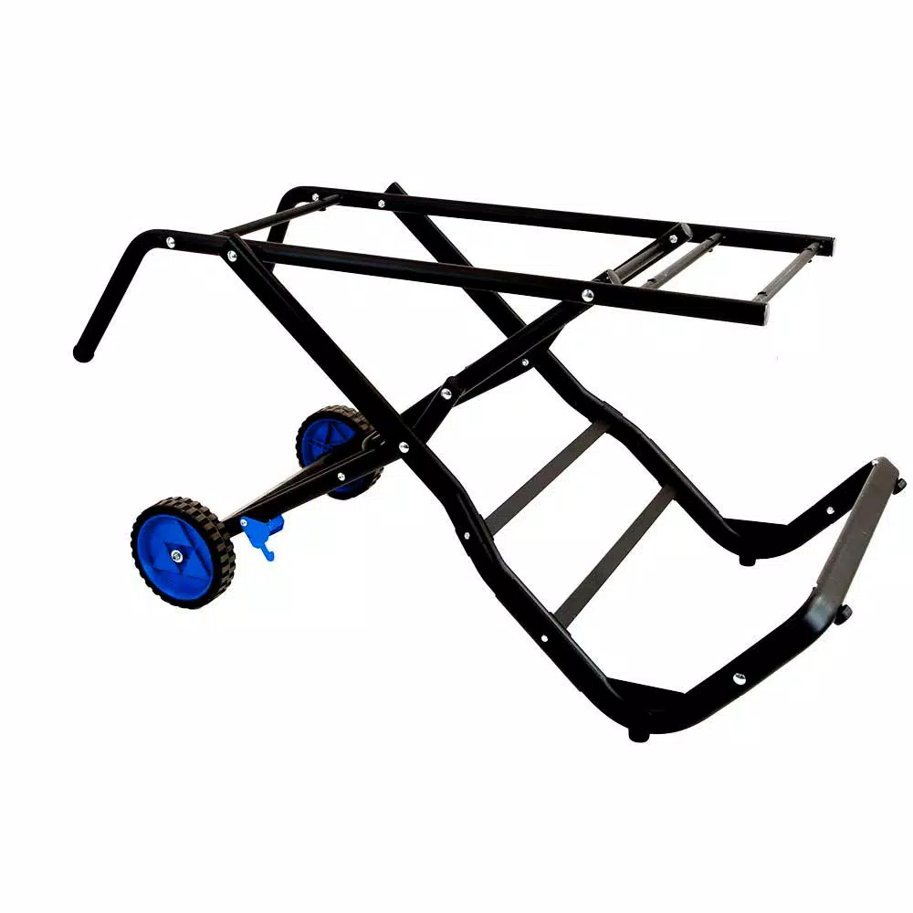- Sets up and folds down with a foot actuated pedal making this saw easily transported from location to location