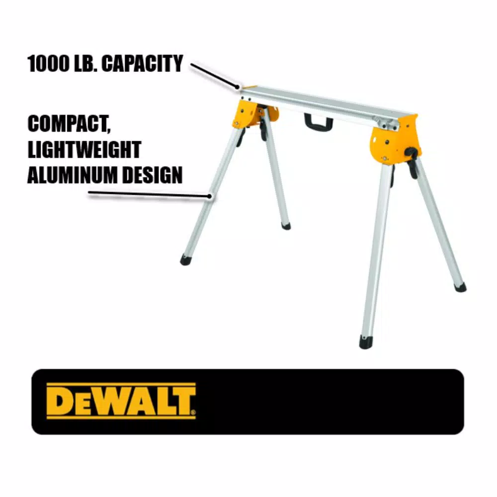 The DEWALT Heavy Duty Work Stand has a compact design that allows for easy transport and storage. Though it’s constructed of lightweight aluminum and weighs only 15.4 lbs., the stand has a 1000-pound capacity to handle the toughest jobs. Leg lock levers make set-up fast and easy.