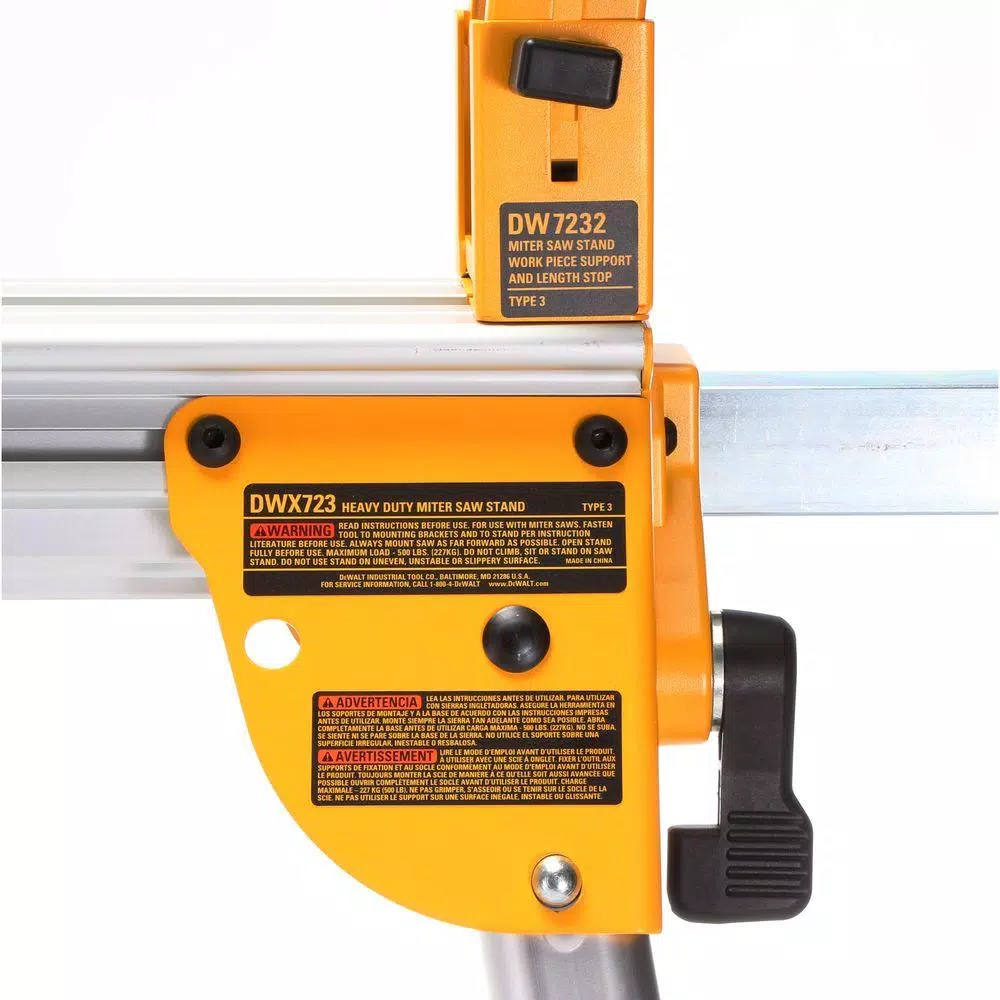 The DEWALT Heavy-Duty Miter Saw Stand features a versatile design that works with most brands of miter saws. Constructed of lightweight aluminum, it weighs 35 lbs. allowing for easy transportation to and from the job site. The 5-1/2 in. beams extend to support 16 ft. of material and can hold up to 500 lbs. The legs fold for storage and have lock levers for fast set-up.