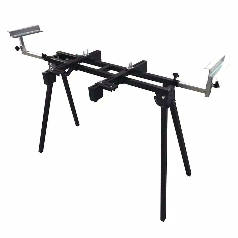 The Steel Core Folding Miter Saw Work Stand features quick-attached machine mounts for easy attachment and removal of your miter saw from the stand. This miter saw work stand folds up for convenience and easy storage and can be used for most miter saws in the market, plus the rail system works with all makes of miter saws. The folding legs with snap pin setup gives you quick and easy assembly.