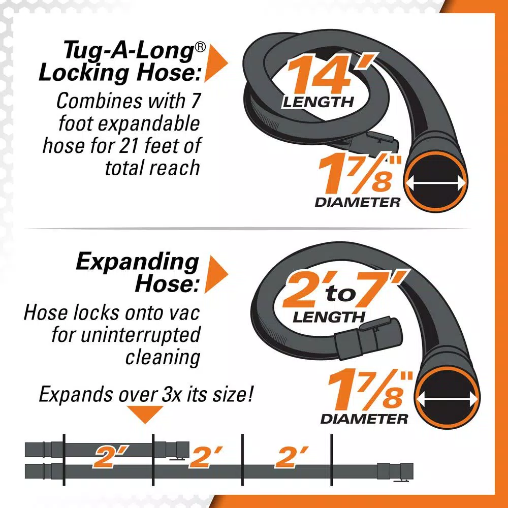 - 7 ft. collapsible hose combined with the 14 ft. plastic hose provides 21 ft. of reach