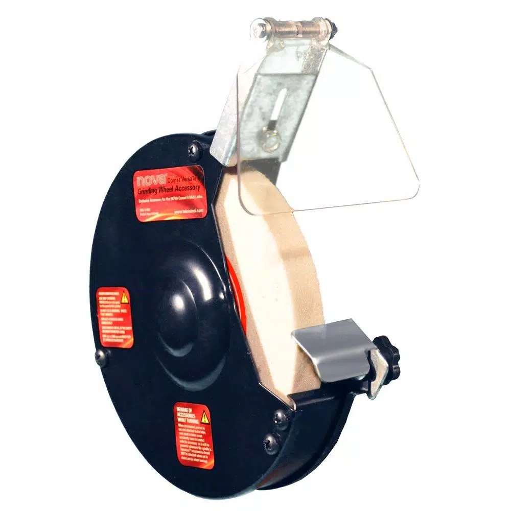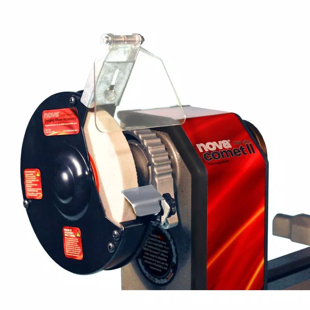 NOVA 47002 Comet II Versa turn Grinding Wheel Accessory fits the NOVA 46000 Comet II Midi Wood Lathe. This unique, patented world first approach to versatile Midi Wood Lathe design delivers maximum flexibility for the wood lathe owner, allowing the user to consolidate key wood working and wood turning functions into the single machine, saving space, time and money. The 47002 Comet II Versa turn Grinding Wheel Accessory is quick to lock and unlock into place, it requires the 47000 Comet II Versa turn Coupler Accessory to attach to your NOVA 46000 Comet II Midi Wood Lathe. Once this coupler is in place. You can add the 47002 Comet II Versa turn Grinding Wheel Accessory and other Versa turn Accessories in the range. The Grinding Wheel is a 6 in. x 3/4 in. Whitestone Wheel, with outer case, tool rest and eye safety shield. The variable speed adjustment enables you to select just the right speed to grind, without burning the tool edge. Designed by Teknatool International, innovating since 1955. Backed by a full replacement 1-Year warranty. Call our customer service center toll free on 1-866-748-3025.