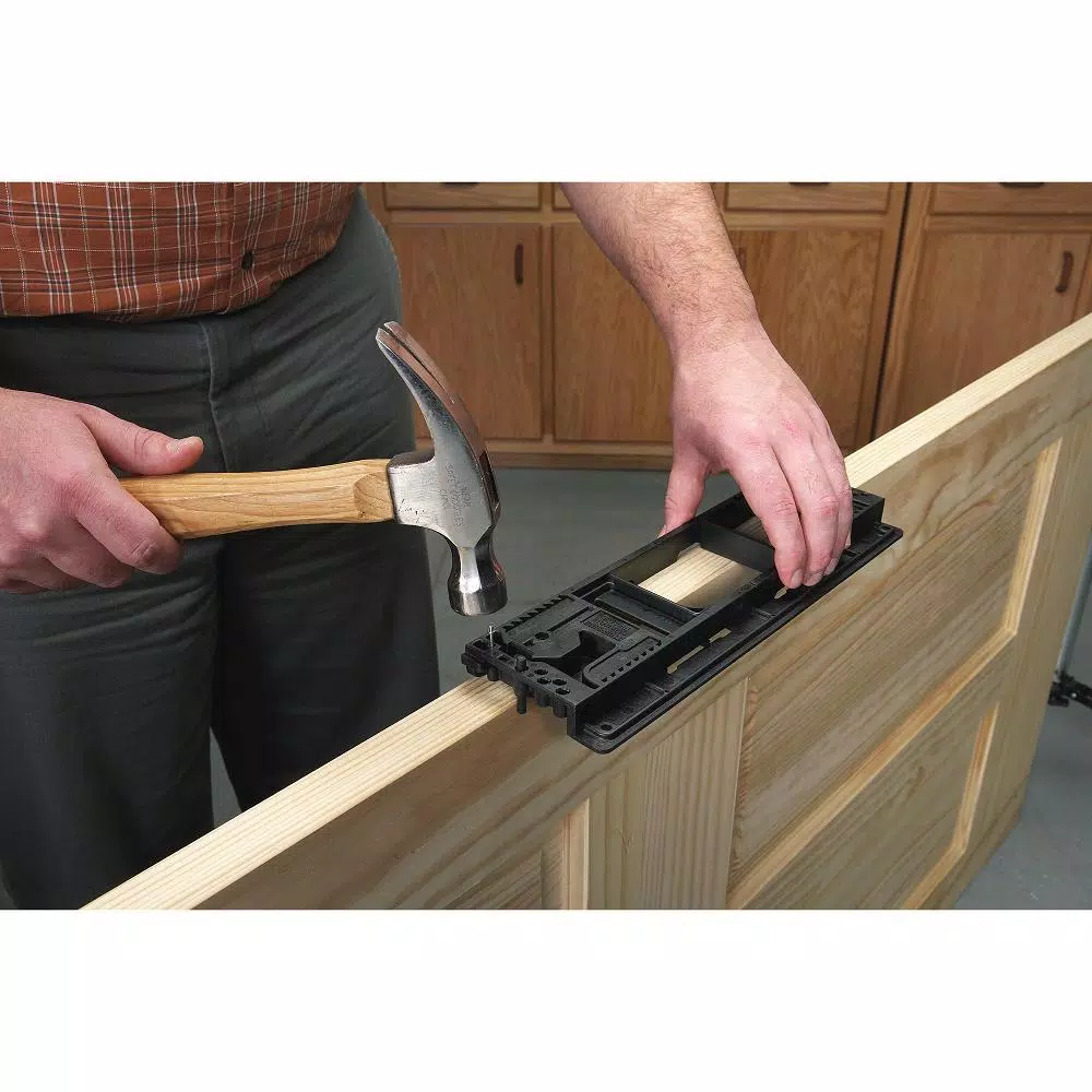 - Positive placement lock-in pins enable quick and secure placement of the template to the door and jamb