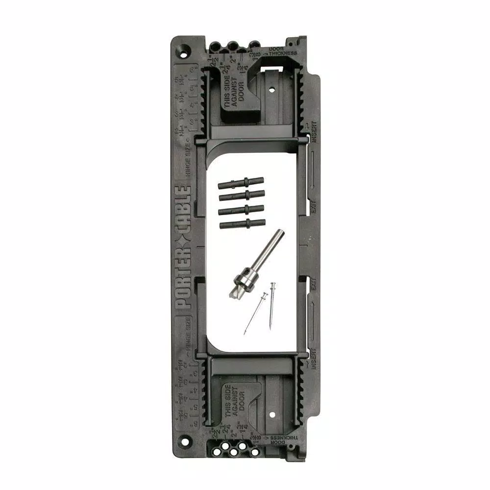 For durability and convenience, use the Porter Cable 2-1/2 in. x 6 in. Single Hinge Template. It adjusts to square-corner hinges up to 4 in. and radius-corner hinges up to 5/8 in. This template can accommodate doors up to 1-3/4 in. thick.