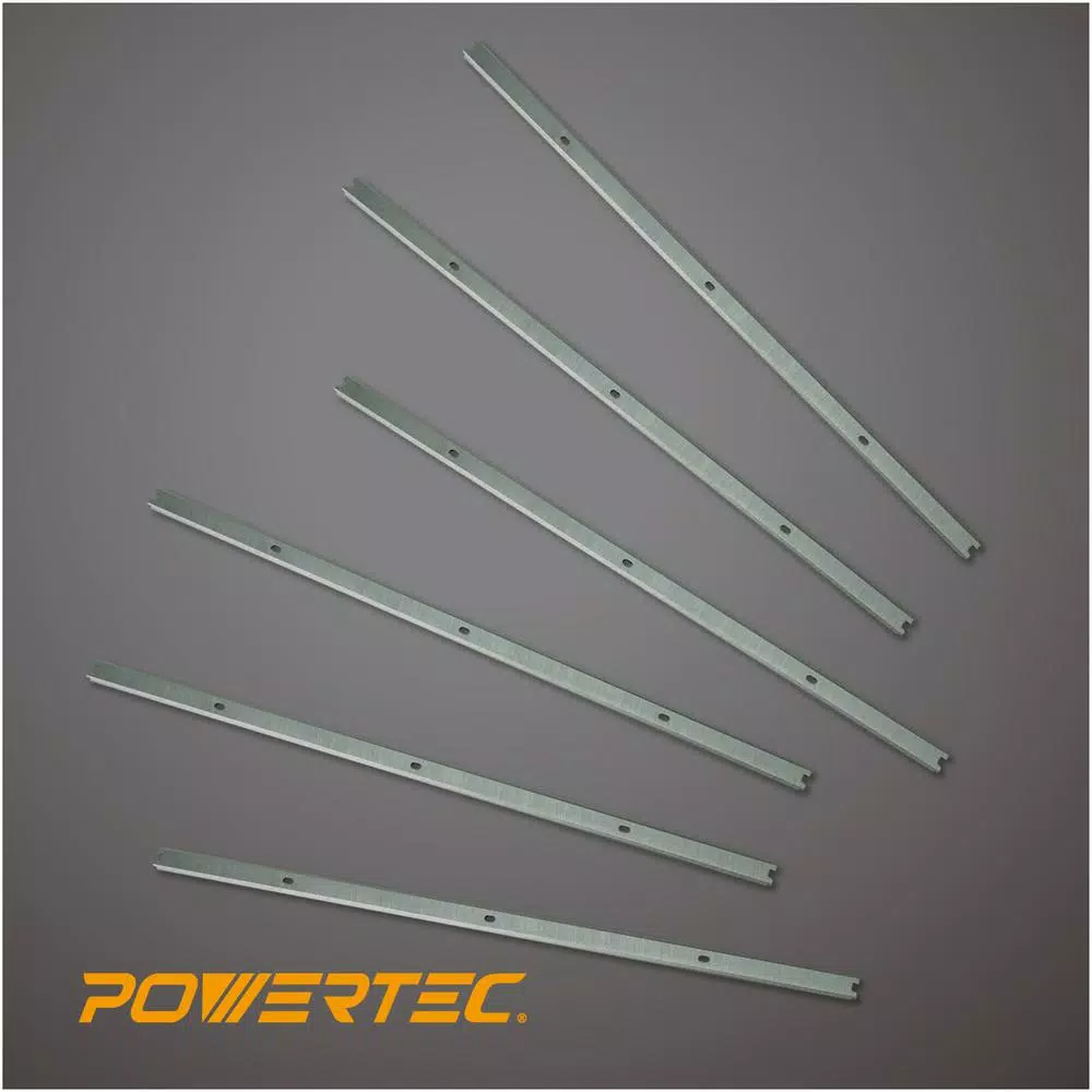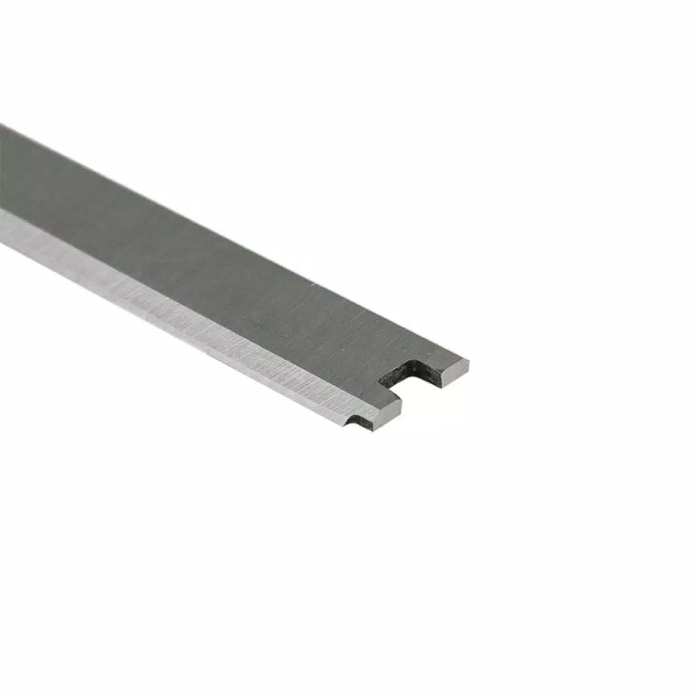 POWERTEC USA High Speed Steel (HSS) Knives are more than the simple planer knives for replacement. The manufacturing process started with premium European HSS material, followed by strictly professional machining and quality control that ensure extreme sharpness, precision, balancing, and tight tolerance in every piece of POWERTEC HSS Knife product. The final Heat Treatment enhances the hardness and durability. POWERTECβs goal is to maximize the cutting performance every thicknesser could possibly achieve. With the best quality, POWERTEC Planer Blades cut the wood efficiently and consistently and leave a smooth and flat surface on the woodworking workpieces, no matter softwood or hardwood. No matter pursuit for the true flatness or production efficiency, our HSS Blades are always at your service. Our tedious honing work ensures the cutting edge being ultra sharp and straight. The industrial-grade consistent cutting performance leaves only the finest planning result on the surface of the stocks. The POWERTEC planer blades are precisely machined to form the mounting holes and locator notches. Every blade has to go through strict quality control to make sure they will be accurately aligned and installed on the cutter head. The cutting edges are at both sides of the blade. When 1 edge went dull, simply by turning the blade 180Β° and re-installing it, you have fresh sharp cutting edge.