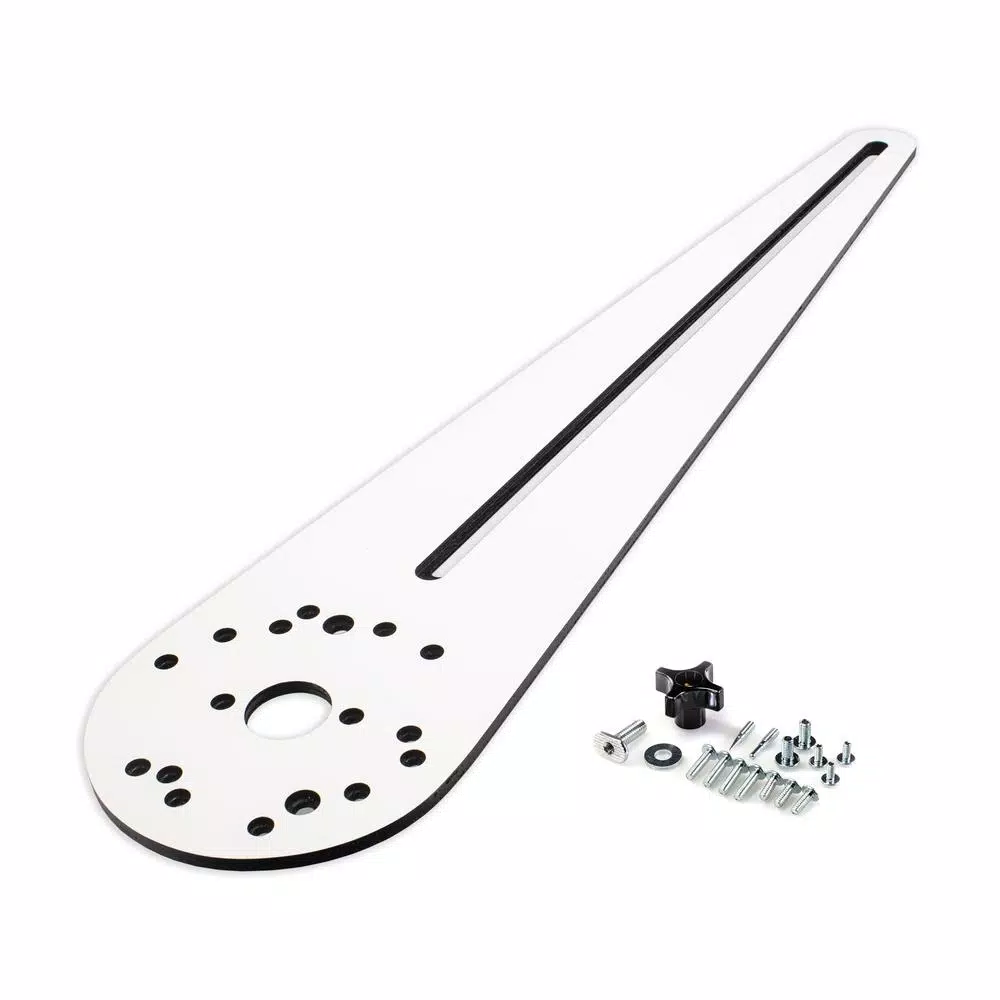 - Study construction inclided: design Jig is constructed from melamine-coated 7-layer plywood for strength, stability, and lightweight high-performance – long compass design for greater range – use in both hard and soft woods, included: 1 easy to read manual 1 big router compass circle jig 2 insert pins one 5/16 in. -18 tee-bolt pivot pin one 4-point 5/16 in. -18 knob and washer two 1/4 in. -20 screws 3 # 10-24 screws 3 # 8-32 screws and 4 # 10-32 screws