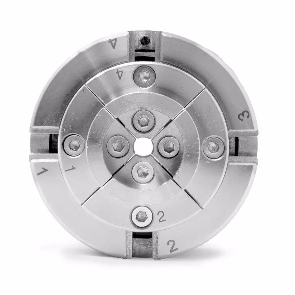 Remember when you had maximum versatility with your wood lathe. Take on projects of all shapes and sizes with the WEN 3.75 in. 4-Jaw Self-Centering Keyed Scroll Chuck. This versatile chuck features dovetailed jaws, allowing you to grip the outside of stock between 1-1/4 to 2-1/2 in. in size, or to hold internal pilot holes ranging from 1-3/4 to 3-1/8 in. in diameter. The keyed tightening mechanism prevents the chuck from opening during high RPM operation, providing maximum clamping power to your workpiece. If that’s not enough, you can also install the included screw depending on the task at hand. Indexed backplate indicates 24 different positions while the included tools make for easy adjustments to the chuck. The 1 in. x 8TPI mounting thread fits a wide variety of wood lathes, including the WEN 3420, 3420T, 3421, 3424, 3424T, 34018, 3427, 34018, 34027 and 34034. NOTE: max recommended workpiece size for 3420, 3420T and 3421 is 4 in.