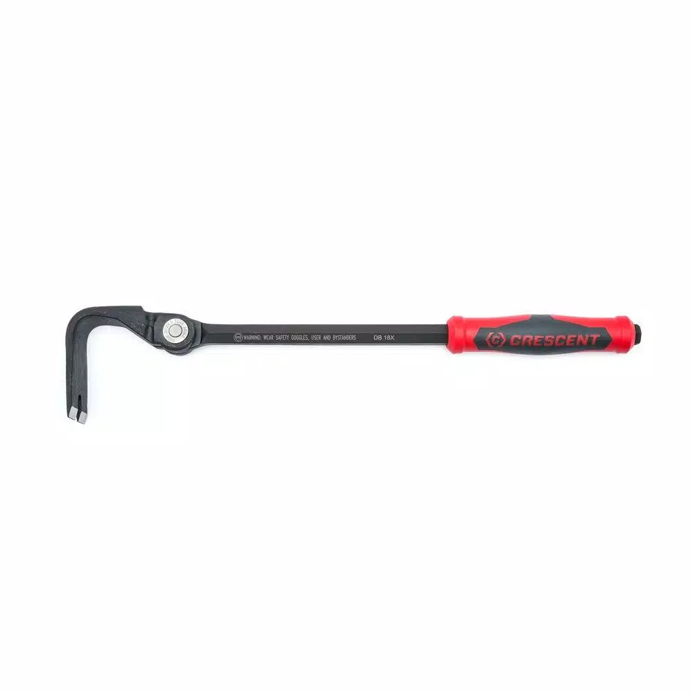 The Crescent Indexing Flat Pry Bar features a 90° flat head for better access and wider support when prying against surfaces. The head indexes over 180° and locks into 15 different positions for unparalleled access and utility. The raised, reinforced wedge on the back of the indexing head provides a solid striking surface to hit for loosening and penetration. It is completed with a durable 2-tone dual material grip that provides comfort, control and added safety during use or transport around the jobsite.