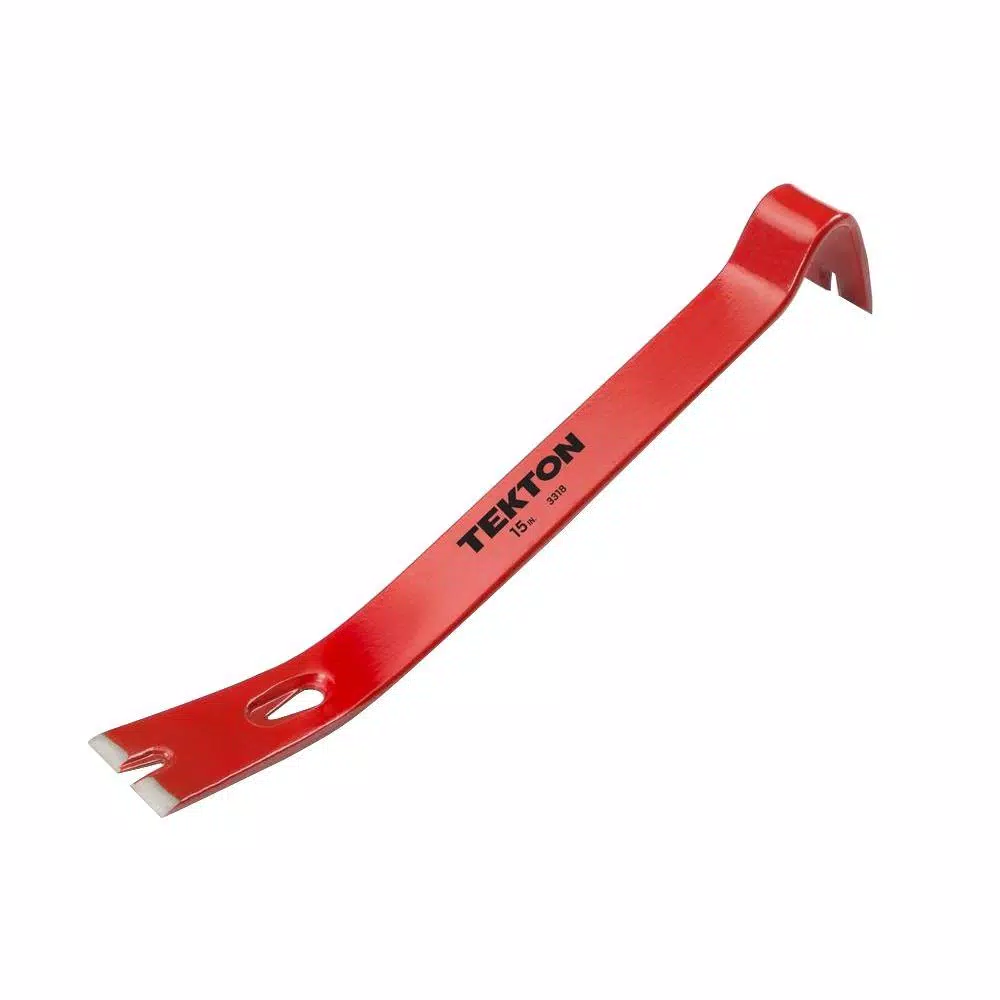 Whether it’s roofing or framing, demolition or trim, the TEKTON 15 in. Utility Pry Bar is the versatile, all-purpose prying and nail-pulling workhorse you will want on every project. The broad flat end gives you extra reach and surface area, while the hooked rocker end delivers incredibly high leverage, even in tight spaces. Sharp, thin chisel tips slip effortlessly into the tightest cracks and crevices to pry apart old wall studs, loosen molding, free worn shingles, and lift damaged deck boards. Nail slots at each end and in the middle let you get at nails from multiple positions or angles. They slide under and grip all head styles of nails, brads, tacks and staples, even wire nails from air nailers, giving you the leverage to pull them cleanly. Made from high-strength forged and heat-treated steel, this tough guy will quickly become one of your most trusted tools in the box.
