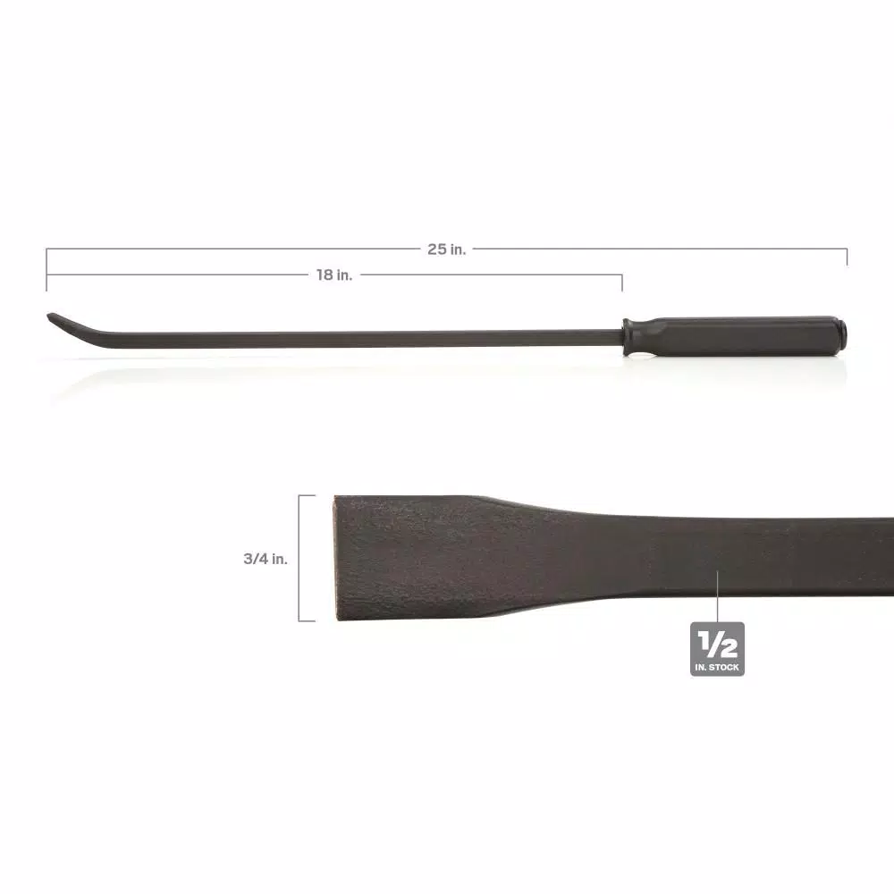 Angled Tip: In addition to creating a high-leverage fulcrum for prying, the angled tip also provides a pivot point around which to lift and position heavy objects like machinery or tables with fine control. Comfortable Handle: The generously sized textured handle provides a sure, nonslip grip that lets you comfortably and confidently apply as much force as needed. Made of impact-resistant polypropylene, it’s extremely durable and unaffected by fuels, oils, cleaners, solvents, and most other common chemicals. Steel Striking Cap: A large, 1 inch diameter solid steel cap on the end of the handle is designed for hammer striking, allowing you to drive the tip into the tightest of spaces. Inserted deeply into the handle, the cap fully contacts the end of the bar, so the force of each hammer blow is transferred directly to the bar itself. Strong and Reliable Construction: Forged on stout 1/2 inch square stock, this high-strength bar won’t easily flex or twist under load so it’s able to deliver consistent leverage. A black oxide finish resists corrosion and won’t flake or chip off like painted, powder coated, or chrome plated finishes.