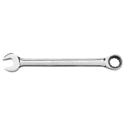 The GearWrench 1-5/8 in. Ratcheting Combination Wrench needs as little as 5° to Move Fasteners vs. 30° for Standard Wrenches. Small ratcheting box end design allows access to tight spots where a ratchet and socket or a conventional ratcheting box end wrench will not fit. Surface drive on box end provides off-corner loading for better grip and reduced fastener rounding.