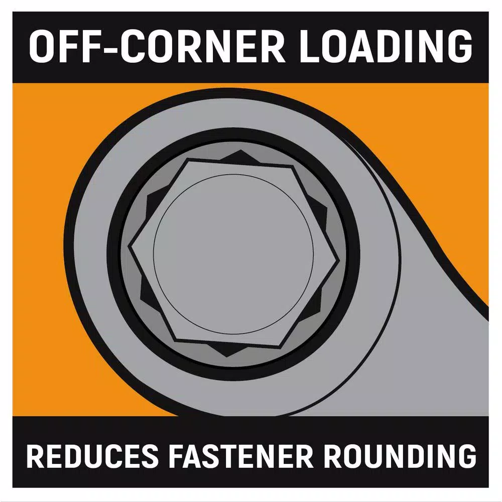 Open Ended Ratcheting Wrench allows ratcheting of nuts and bolts without removing wrench from fastener, making jobs faster and easier. Ratcheting speed with the access of an open end wrench. Ratcheting box end needs as little as 5° to move fasteners versus 30° for standard box end wrenches. Up to 25% more torque with less fastener rounding.