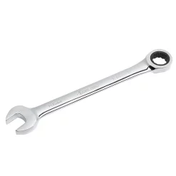 Husky’s ratcheting combination wrenches feature a 12-point, 72-tooth ratcheting box end that needs only 5° to engage fasteners. Each wrench is manufactured from Chrome Alloy steel and heat treated for added strength and wear protection; providing durability for a lifetime of hard use. Their polished chrome finish resist rust and corrosion and easily wipes clean of oil and dirt. Both the open and box end features chamfered lead ins for quick and easy placement onto fasteners every time.
