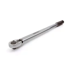 Calibrated to an accuracy of +/- 4%, the TEKTON 1/2 in. Drive Click Torque Wrench lets you work with confidence, eliminating guessing and the common tendency to overtighten fasteners. Correctly tightening fasteners to vehicle or equipment torque specifications ensures parts are properly secured without being damaged. Simple and easy to use, this wrench has a reversible ratcheting head that drives fasteners in both directions and measures torque in the clockwise direction. To measure torque, set the desired value on the handle scale (foot pounds or Newton meters) and begin tightening the fastener. When the preset torque value is reached, a reliable mechanical operation inside the handle produces a click you can hear and feel, alerting you to stop applying force. Built for consistent performance and years of dependable service, the mechanical design does not need batteries and the all-steel construction has no plastic parts to break or wear out. Important: This wrench is shipped pre-calibrated and ready to use. To help maintain calibration, store at its lowest setting of 25 ft./lb. (33.9 Nm) when not in use. Be sure to read and understand the operator’s manual, including all safety information, before first use.