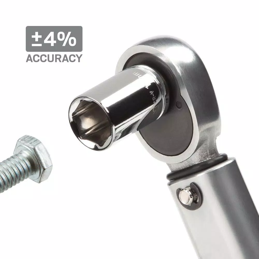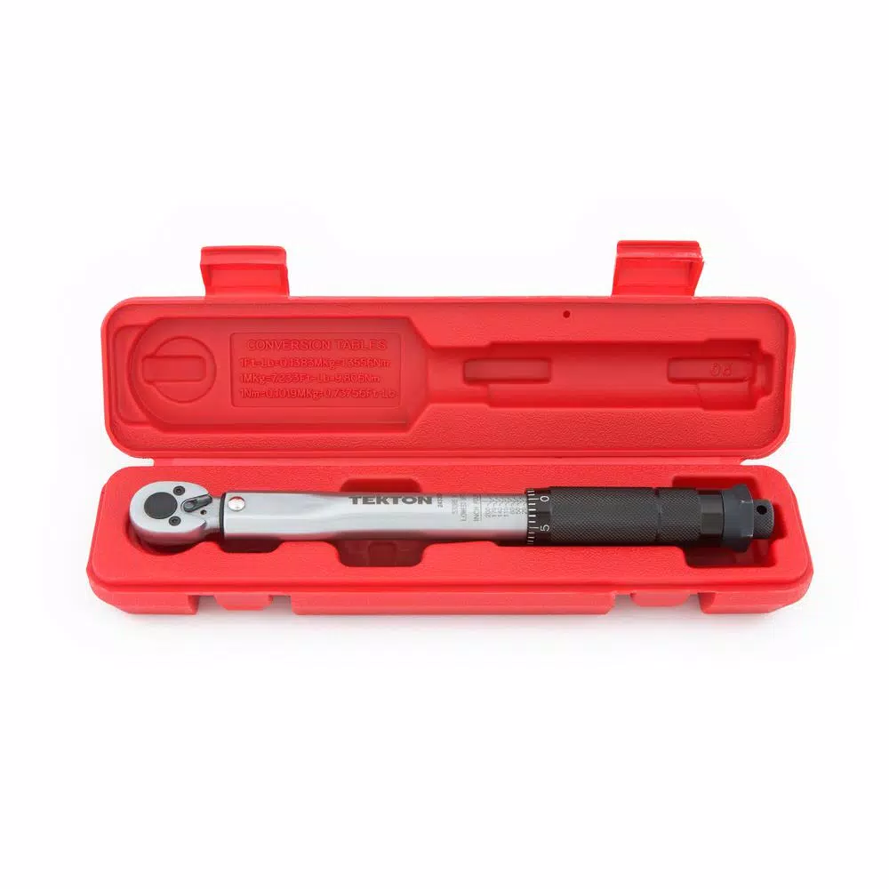 Calibrated to an accuracy of +/- 4%, the TEKTON 1/4 in. Drive Click Torque Wrench lets you work with confidence, eliminating guessing and the common tendency to overtighten fasteners. Correctly tightening fasteners to vehicle or equipment torque specifications ensures parts are properly secured without being damaged. Simple and easy to use, this wrench has a reversible ratcheting head that drives fasteners in both directions and measures torque in the clockwise direction. To measure torque, set the desired value on the handle scale (inch pounds or Newton meters) and begin tightening the fastener. When the preset torque value is reached, a reliable mechanical operation inside the handle produces a click you can hear and feel, alerting you to stop applying force. Built for consistent performance and years of dependable service, the mechanical design does not need batteries and the all-steel construction has no plastic parts to break or wear out. Important: This wrench is shipped pre-calibrated and ready to use. To help maintain calibration, store at its lowest setting of 20 in./lb. (2.2 Nm) when not in use. Be sure to read and understand the operator’s manual, including all safety information, before first use.