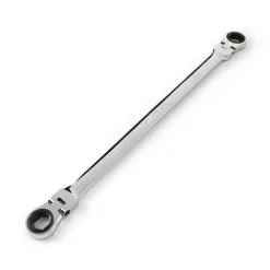TEKTON Extra Long Flex-Head Ratcheting Box End Wrenches offer the speed and ease of ratcheting box ends that stay continuously engaged with fasteners, eliminating the need to re-fit after each turn. Giving you ultimate access and muscle, an extra long beam reaches deep into narrow spots and provides the leverage to turn tough fasteners. Smoothly pivoting through 180°, the heads hold any angle to slide onto fasteners. They are free to move with each stroke, allowing the wrench to navigate around obstructions along the swing path. The 6-point openings provide a sure, snug fit on hex-shaped fasteners so you can apply maximum torque without slipping off, saving aggravation and your knuckles. To prevent round-off, the openings contact and apply force to the flat sides of fastener heads rather than the corners. Equipped with 72-tooth ratchet gears that need just 5° of swing arc to reach the next tooth position, it is fast and efficient when there is not much room to move.